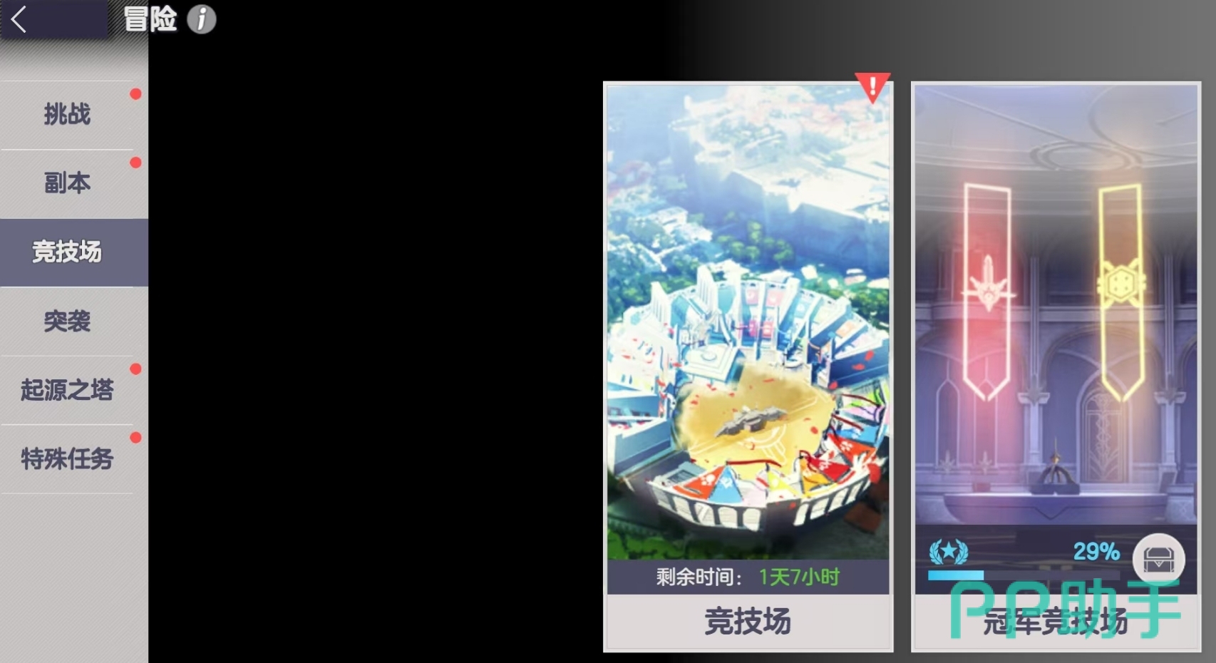 玩家需通过主界面【冒险】菜单中的【竞技场】入口进入PVP模块。当前开放两种竞技模式:常规竞技场与冠军竞技场。常规竞技场采用单队防守+主动挑战机制——您需预先配置一支防守阵容,供其他玩家发起挑战;同时可自主匹配对手的防守队伍进行进攻。每日享有5次免费挑战次数,挑战耗尽后可通过消耗挑战劵继续参与。每次成功击败对手均可获得积分,积分累计影响全服排名,每日24:00依据实时排名发放对应档位的结算奖励。