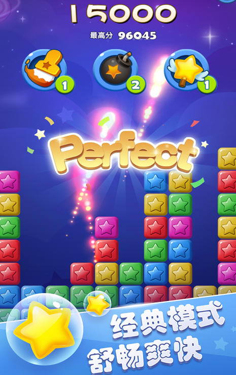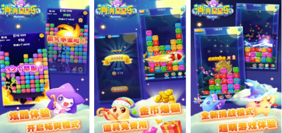各种热门消除游戏当中非常经典的作品,有较多主题关卡,每个都有不同难度及布局,从简单的初级到之后的高级关卡可体验到不同的乐趣,游戏中有多样化特效,通过连接相同星星图案,触发各种特效并完成联机爆炸。有全面的社交互动元素,可与好友共同比拼分数互相赠送道具。精美的画面及音效给玩家带来极致体验。