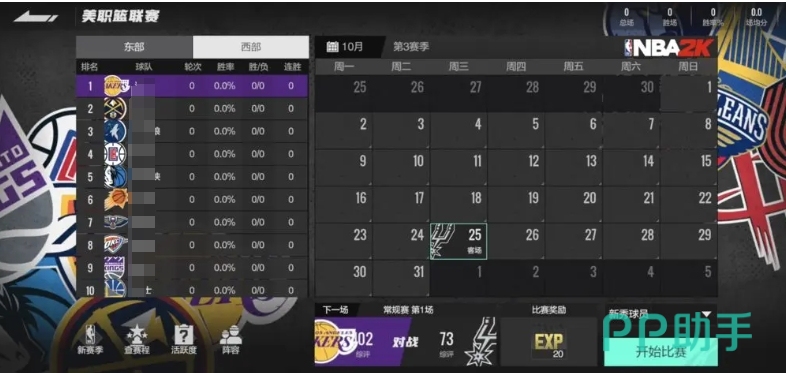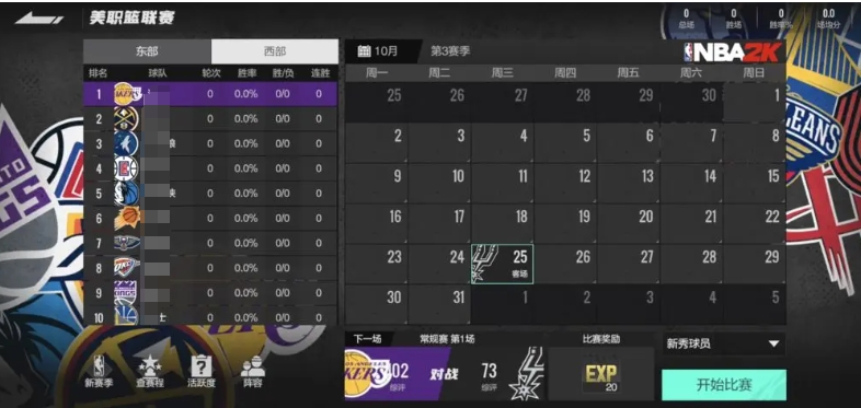 除了以上两个娱乐模式外,美职篮全明星还巧妙地将NBA漫长激烈的赛季融入了游戏之中,打造了一个全新的娱乐模式叫做美职篮联赛模式,这个类似PVE版的王朝模式,玩起来也别有一番风味,它模拟了现实中球队的一整个赛程,大家此时可以自己组建球队带领球员参与一整个赛事,在这个过程中,玩家需要闯过一关又一关比赛,每一个胜利都离奥布莱恩杯更近一步,对于篮球情怀党来说,这绝对是一场不可错过的模式盛宴,同时对于新玩家而言,这也是一个绝佳的练手之地,他们可以在这里熟悉游戏规则、磨练技巧、提升实力,为未来的排位赛做好准备。
