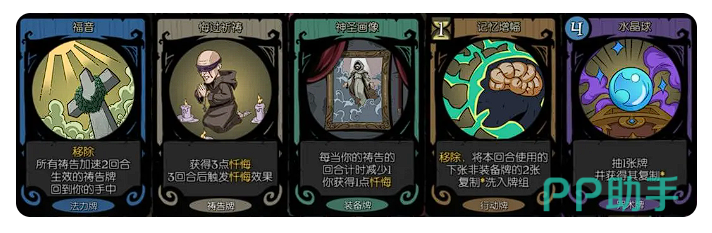 画像流以神圣画像叠忏悔输出。核心卡牌:神圣画像。这个流派以叠忏悔输出为主,效率更高。记忆增幅和水晶球可以翻倍福音悔过的数量。然后复制临时祷告的话要注意技巧,一定要保证福音出手即回收。