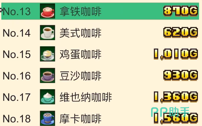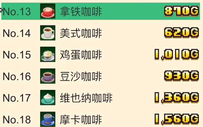 本作的核心围绕咖啡及相关饮品展开,因此掌握各类饮品的制作方法至关重要。首先介绍基础款——牛奶咖啡,这是前中期顾客点单频率较高的饮品之一。只需在咖啡类别中加入牛奶即可完成调制。另一款常见饮品是美式咖啡,其配方为咖啡豆搭配矿泉水,适合喜欢清淡口味的客人。