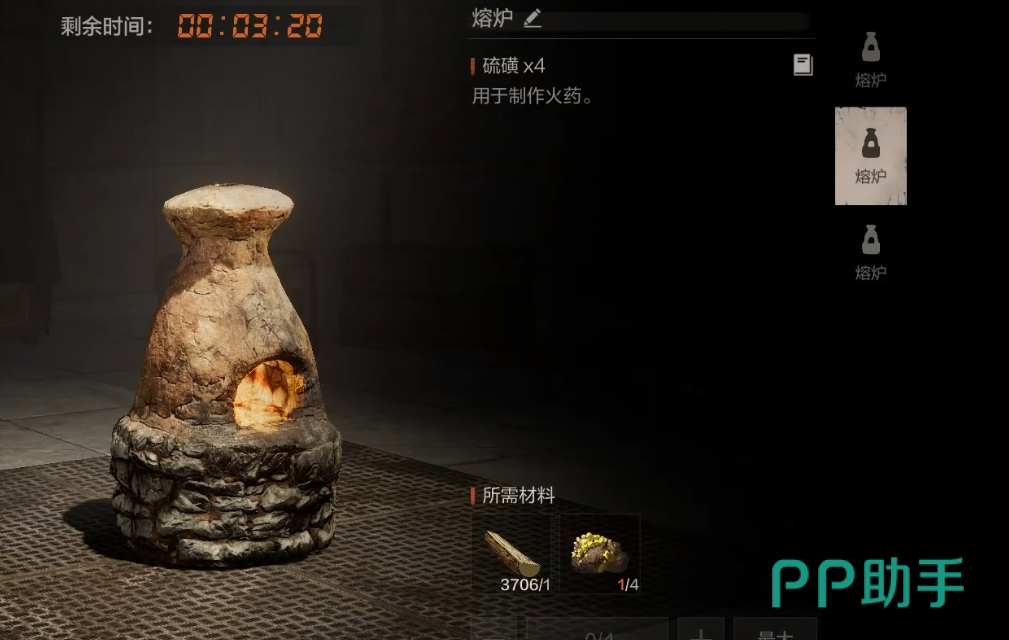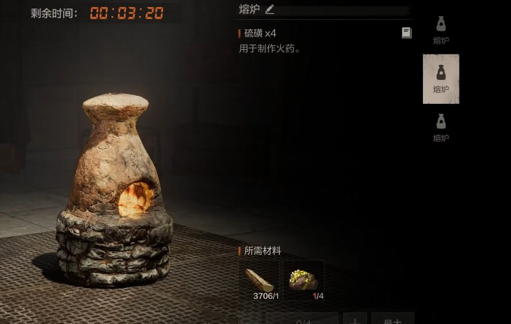 完成基础配置后,进入发育深化阶段。主动狩猎棕熊可获取油脂,该材料为熔炉建造必需资源;击杀后务必拾取熊肉投喂坐骑,维持其生命值与移动性能。返回基地后立即搭建熔炉,随即开展矿石采集——矿石是后期高级装备合成的核心原料,持续稳定的矿产供应直接决定战力上限。尽管挖矿过程重复性较强,但不可跳过,这是构建可持续作战体系的基础环节。