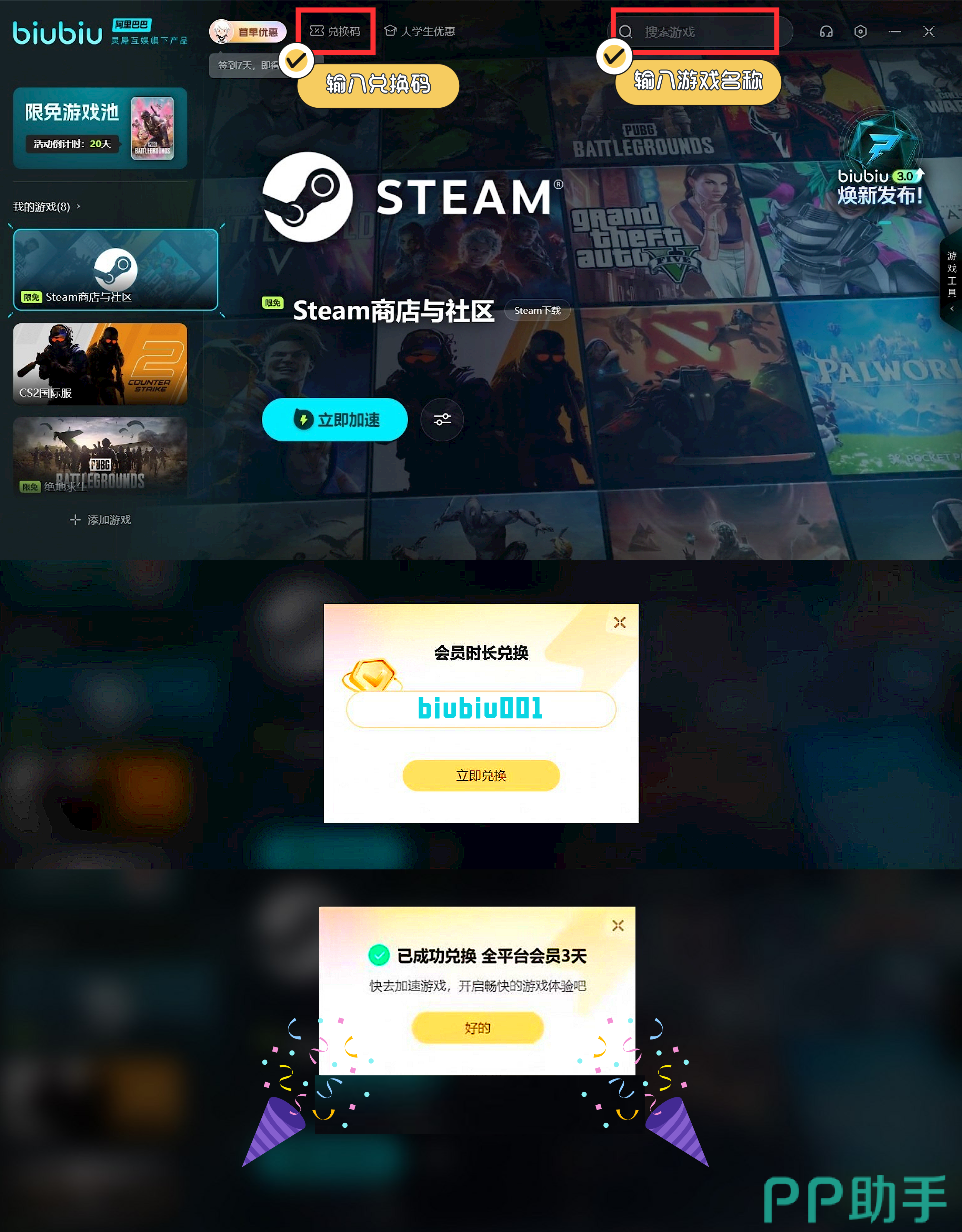 如果在登录时发现速度比较慢,有网络延迟等现象,这可能和网络的速度有关,要想避免卡顿,可以借助网络优化。biubiu加速器现在还有免费加速时长可以领取。新用户叠加两种方式,一共是免费75小时。新手礼包3小时+兑换码【biubiu001】还有一个72小时的免费加速时长。