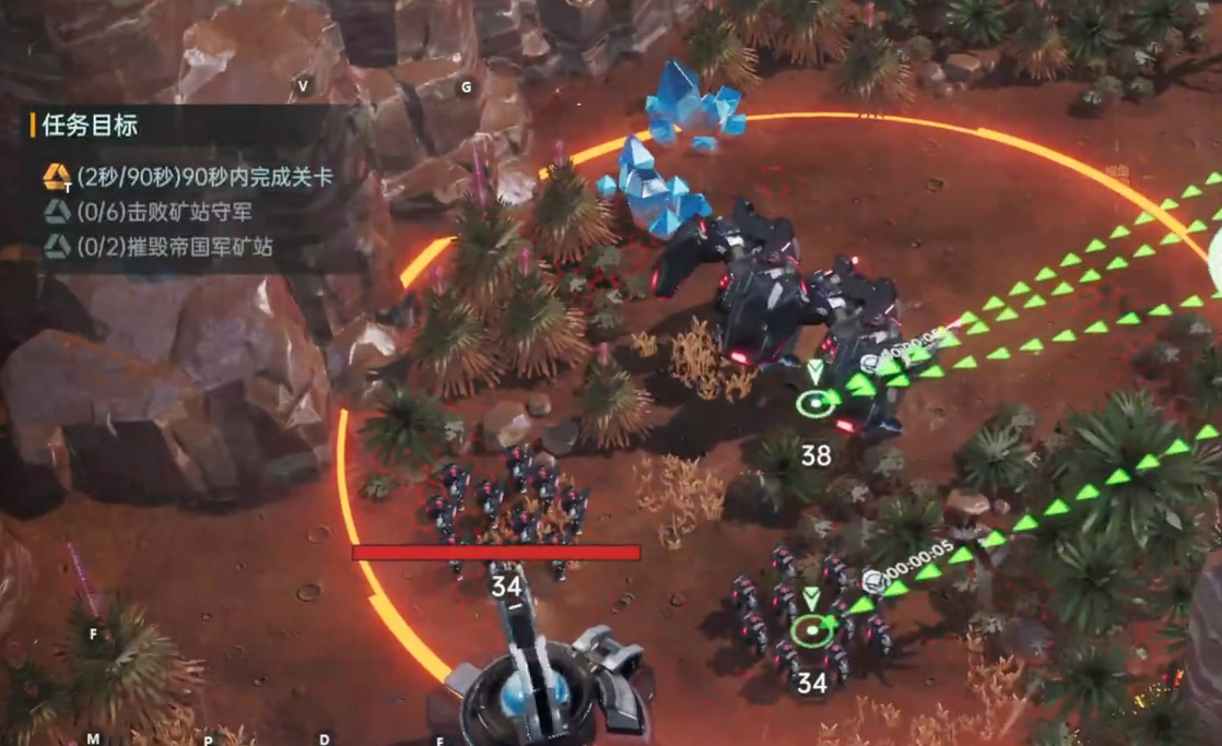 本关限时90秒,需同步达成三项核心目标:歼灭矿站守军、摧毁帝国军矿站建筑、全程保持主力单位存活。推荐配置如下:珞璃携带歼星武器(触发普攻时概率提升暴击)、破甲猛攻与行星重炮;赵云装配智械细胞、石墨导弹(提供普攻伤害加成与目标短路效果)及增上强袭。兵种方面,选用摇光母舰作为英雄平替单位,兼顾输出与战场控制能力。