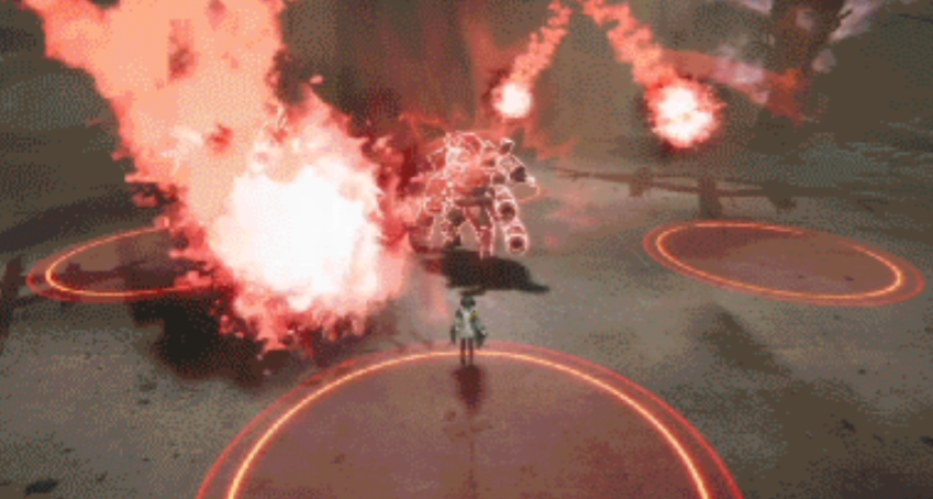 【震地冲击】:罗丹跃至半空后垂直下坠,落地点生成持续扩大的红色预警圈。该技能判定范围随时间递增,推荐采用平行于落点方向的横向闪避,避免沿直线前后移动——因冲击波存在延迟扩散特性,垂直位移极易被第二层范围命中。