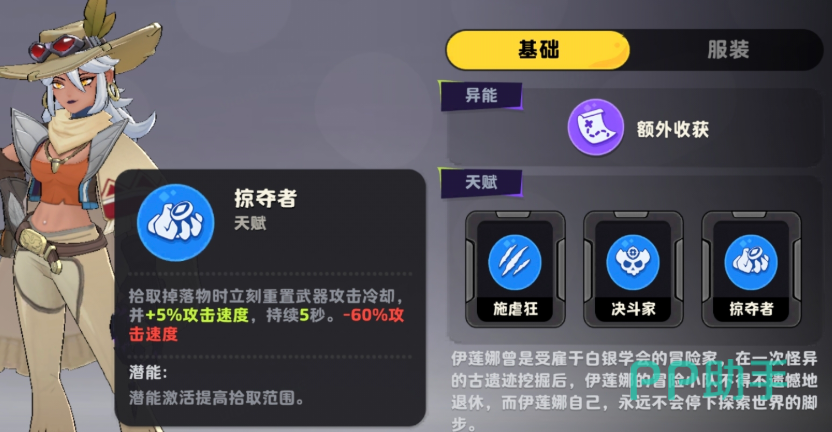终局向天赋【掠夺者】则聚焦于攻速爆发与节奏控制:拾取任意掉落物瞬间重置当前近战武器冷却时间,并额外提供5%攻击速度加成,持续5秒。该效果使伊莲娜可在短时间内打出极高密度的连击,尤其适用于应对高威胁群怪场景。需留意的是,效果结束后将触发60%攻速惩罚,因此建议搭配已解锁的回血类技能,在爆发窗口结束后快速恢复生存能力。其潜能还可扩大拾取范围,进一步提升资源回收效率。