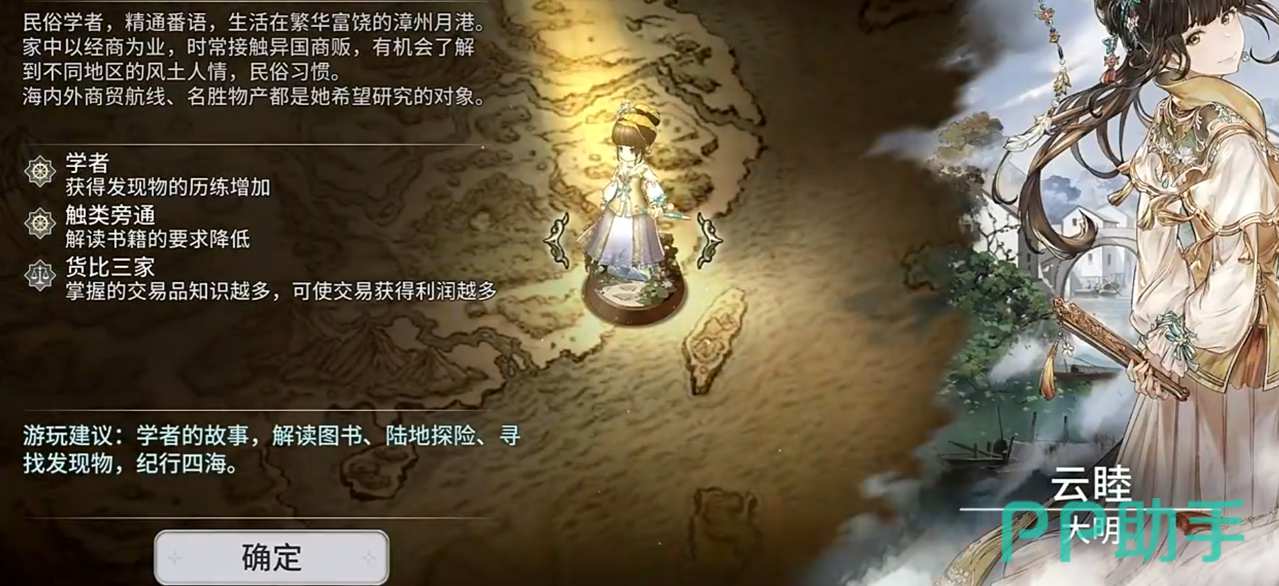 《风帆纪元》中云睦作为核心可选主角之一,出身福建漳州商人世家,兼具民俗学研究背景与多语种能力,其知性沉稳又富有探索精神的角色设定,深受玩家青睐。本文将系统梳理云睦专属主线的完整推进逻辑,涵盖关键节点、任务顺序、资源要求及文化考据线索,帮助玩家高效解锁全部剧情分支。云睦主线起始于漳州故里,需通过研读典
