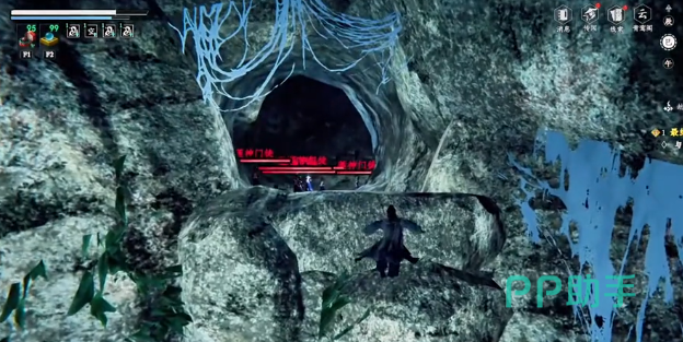 首先需要明确目标位置。通过地图定位功能,前往莲花铁门侧面区域,此处会有一个清晰可见的洞口作为入口。游戏镜头会在此处进行特写提示,帮助玩家快速识别进入路径。角色需提前解锁基础移动技能,确保具备足够的操作能力。从地面或铁门旁的高台起跳,利用空中滑行精准落入洞穴内部。注意落点选择,防止因失误坠落导致重试。