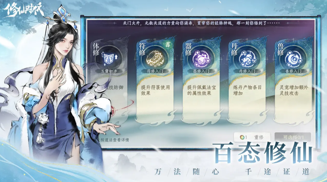 《修仙时代》是一款以东方古典美学为基底的沉浸式古风修仙题材手游,游戏构建了一个高度还原的水墨写意修真世界。玩家将穿越至灵气充盈的古代修真界,从身具灵根的初入道者起步,踏上炼气、筑基、金丹、元婴直至渡劫飞升的完整修行之路。修为提升与境界突破是贯穿全程的核心成长逻辑,二者相辅相成,共同驱动角色实力跃迁。