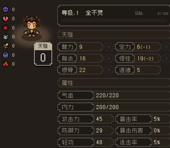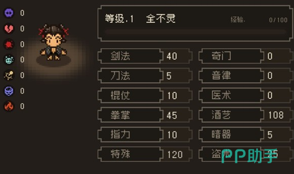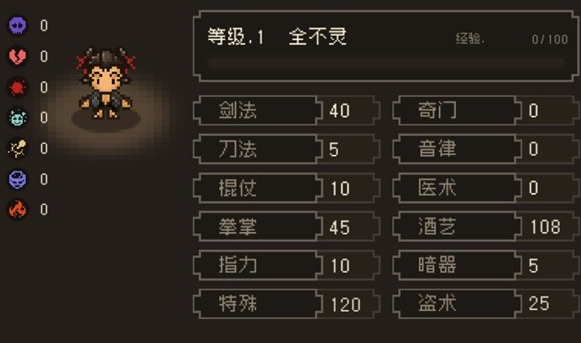 全不灵的剑道、拳掌属性适合学习,可以学会害风剑法和真踩脚趾两大技能,输出都很不错。另外他还有独特的盗术天赋,在中后期窃取敌人的物品以及破解部分谜题机关时很好用。酒艺的属性非常高,因此在部分剧情和战斗中可以发挥奇效。