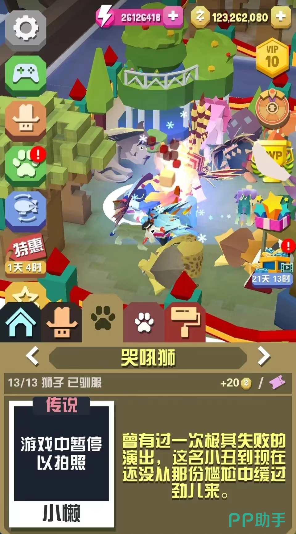 第八个是哭吼狮,想要获得哭吼狮,有两种方式,一种是直接让同一个狮子使用掉其他30个不同的动物,另一种方法是让玩家骑着不同的五头狮子,这样哭吼狮就会出现了。