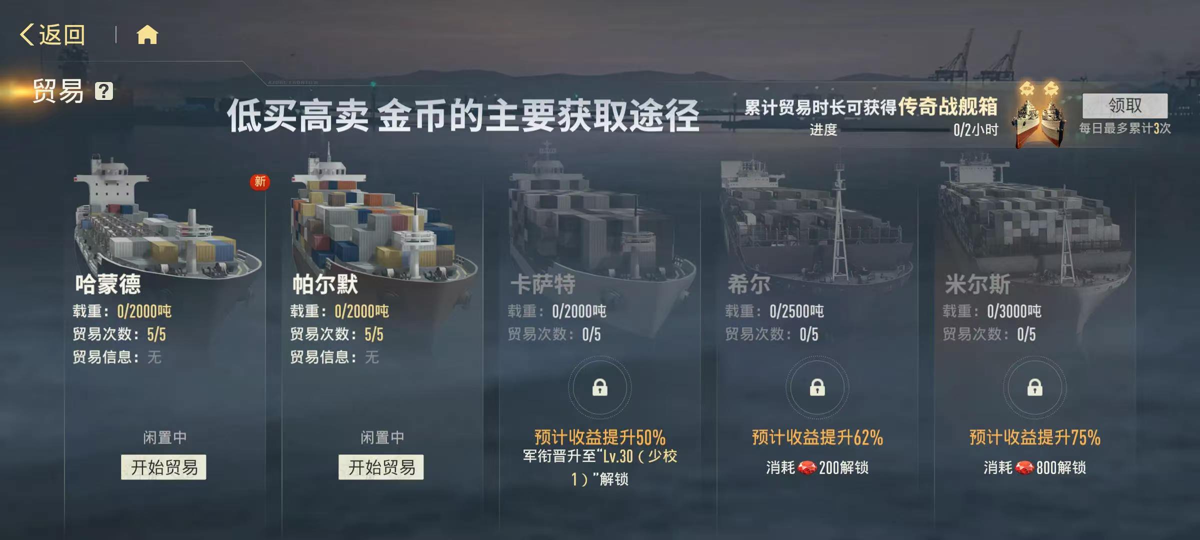除战舰获取外,金币与“锰钢”是另一关键付费维度。金币用于战舰等级提升、星级突破、技能觉醒及炮组解锁等核心养成环节;锰钢则是战舰后期突破阶段的刚性消耗材料。二者均可通过“远洋贸易”玩法长期稳定获取:该模式模拟海上商业经营,玩家通过配置货轮航线、应对随机事件、升级港口设施等方式,逐步扩大收益规模,最终实现金币与锰钢的自主供给闭环。对于时间充裕的玩家,远洋贸易是替代氪金的高效替代方案;而对于追求进度的玩家,合理规划蓝钻使用节奏,亦能显著缩短关键养成周期。