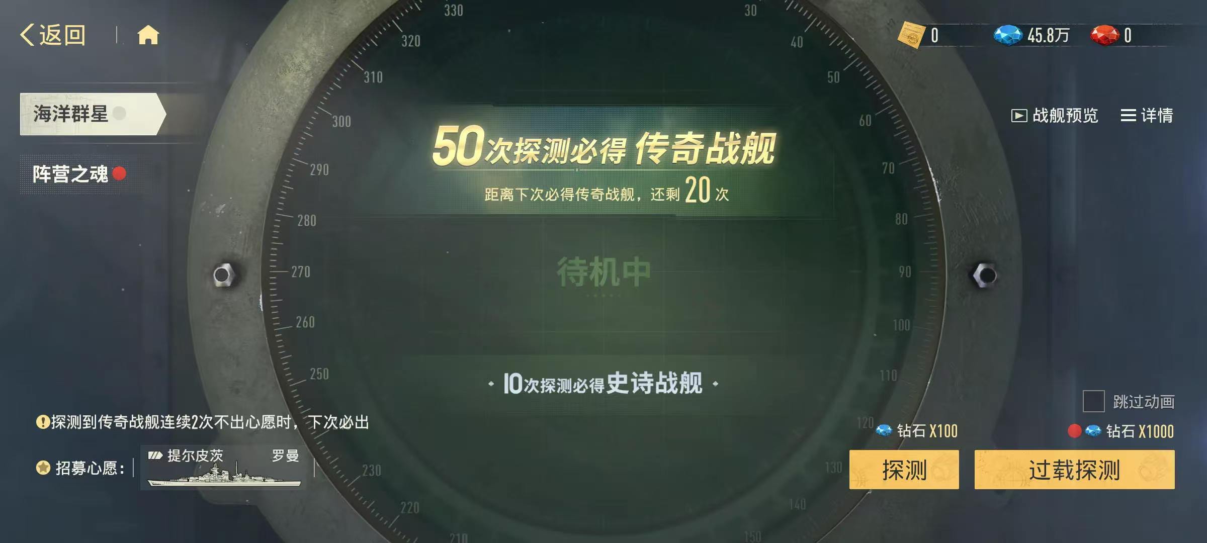 获得战舰后,需通过升星与突破提升战力,该过程依赖对应战舰的专属碎片。碎片来源包括探测掉落、活动副本、演习商店兑换及主线章节通关奖励。值得注意的是,完成全部主线章节后,系统将直接解锁1艘传奇战舰,此为零氪玩家的重要成长节点。此外,部分限定战舰虽需高概率探测获取,但其碎片亦可通过周期性开放的“军备补给”活动稳定刷取。