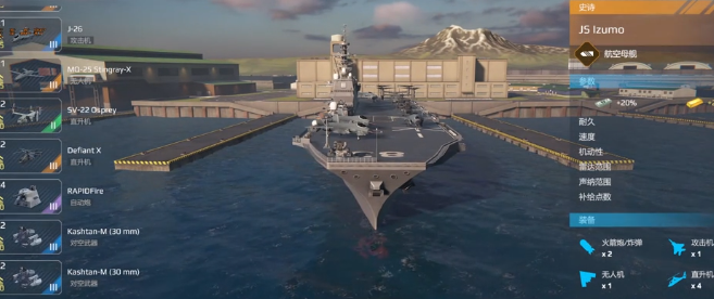 现代战舰出云在看完以上的介绍之后,大家对于这一个战舰就有了更多的了解。如果玩家在游戏中能够获取,尽可能选择用主炮还有导弹去完成远程攻击。用飞机的话就需要携带对空直升机,如此就能拥有较好的实用性。