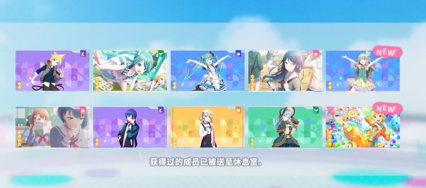 其中,二星、三星的初音未来成员卡都有机会能在完成活动后拿到,而四星成员卡中,除了部分能免费入手外,其它的基本上都需要从卡池里招募获得,并且玩家们在拿到成员卡后,还能解锁与之对应的服装,并为角色进行更换。玩家们在进行四星成员卡的抽取时,也有概率能将二星、三星的成员卡一并抽出来。