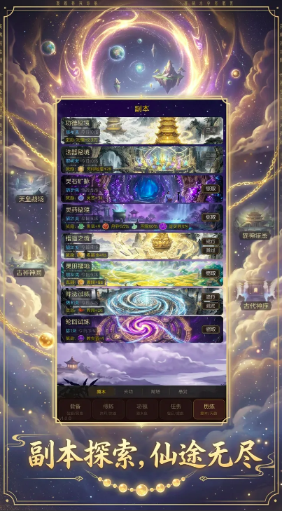 游戏核心玩法围绕“敲木鱼”机制构建:玩家通过点击屏幕完成敲击动作,每次敲击均可积累功德值。该数值可用于驱散角色煞气、提升修炼等级,亦可兑换各类成长资源。值得一提的是,背景音乐巧妙融入现代摇滚编曲,在保留传统古风意境的同时强化节奏张力,形成鲜明听觉记忆点。当前已实装副本类型共计10种,涵盖不同难度与目标导向,为玩家提供持续探索的修仙成长路径。