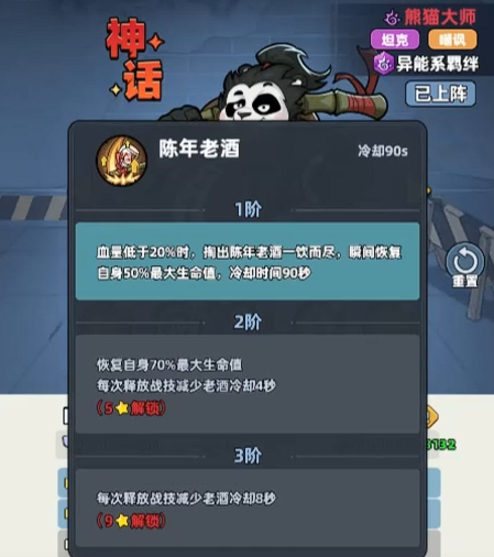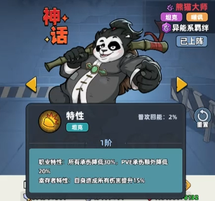 在机制适配性方面,熊猫大师拥有明确的场景倾向:PVP环境中,其核心减伤效果为30%;而在PVE副本中,该数值下调至20%,因此更推荐将其部署于竞技场、公会战等玩家对抗场景。此外,其“幸存者”特性可在后期提供15%的全队伤害加成,进一步放大己方输出效率,形成“越战越强”的正向循环。