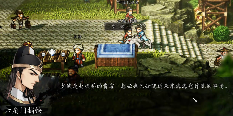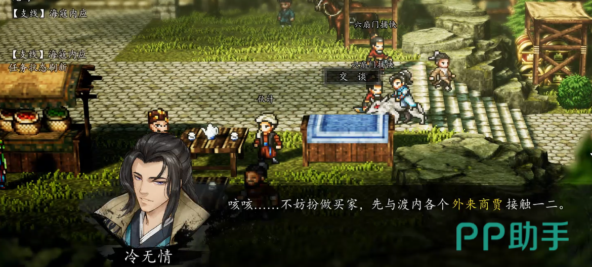 抵达仙人渡后,优先前往提举司建筑群。若队伍中携带冷无情角色,行至提举司正门时将自动触发首段剧情对话;继续向内步行数步,随即进入第二段关键剧情。此时需主动与六扇门捕快交互,正式领取“海寇内应”任务。任务开启后切勿立即深入,建议先在周边NPC间展开探索:布商、瓷器贩子、东洋商人及南洋商人皆有专属语音文本,虽不影响主线进度,但能丰富世界观理解与角色背景认知。