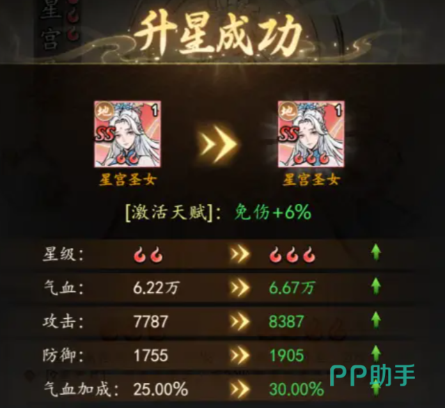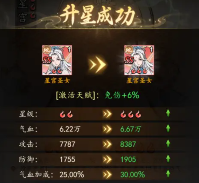 关于星级提升策略:S级伙伴推荐优先升至6星,此时技能等级、基础属性与天赋激活已能满足大部分中期挑战需求;若资源充裕,可进一步升至8星,但不建议强行冲击10星——因每提升1星所需材料呈指数增长,且10星后战力边际收益显著递减。需特别注意的是,伙伴最高可升至16星,每次升星均会为全体已拥有伙伴提供基础战力加成。以洛尘为例,其在升至9星后将解锁关键天赋节点,属性增幅与技能倍率提升明显,实战表现跃升显著。