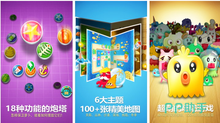 保卫萝卜这款单机防御类游戏在智能机时代就颇受大家关注,拥有着卡通画风而且很容易上手的控制机制,整体内容不肝不氪许多功能各异的炮塔都可以免费解锁,超级丰富的主题地图也会给广大塔防游戏粉丝带来新鲜感,萌哒哒的各种小怪物期待着大家设置防御阵线进行消灭,单机塔防手游爱好者快来试试这款不联网的经典防御佳作吧。