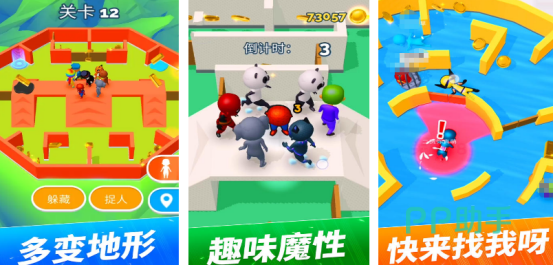 对于很多小孩子来说,在现实生活中都会体验躲猫猫的无尽欢乐,此游戏就是基于经典的躲猫猫玩法为核心,在开局后您将要和其他好友分为不同的阵营。一种有被抓者,而另一种是抓人者。但选择了自己喜欢的阵营之后,就要按照具体的规则和要求顺利完成闯关,一旦间被对方抓住或者在规定的时间之内,将其他对手全部抓到就算游戏结束。