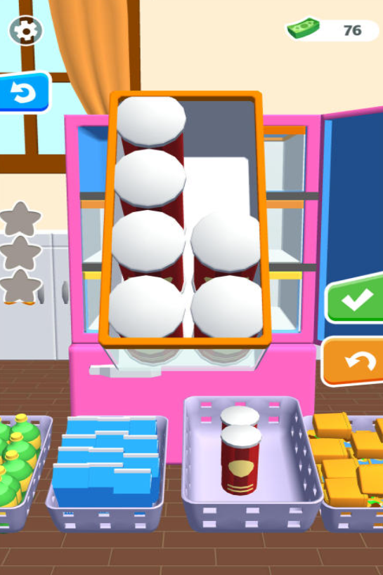 这款游戏运用了3D卡通风格来勾勒画面图像,让大家一看见就顿感亲切。游戏里,各种物品杂乱无章地堆砌,而大家要做的就是将它们分门别类放进冰箱。游戏的每一关都是绝无仅有的创意设计,这才让大家始终能有高昂兴致来玩耍,而且通关可以收到大量金币奖励,让惜财的你心满意足。