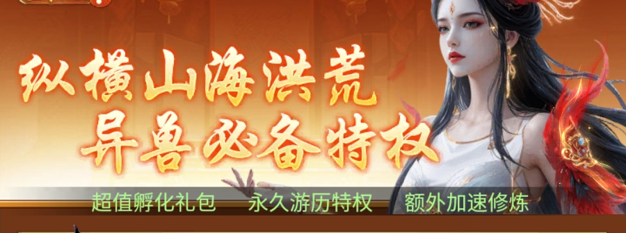 l 68元【加速修炼特权】:开放挂机加速功能,每日额外获得2次加速机会;购入即赠20【异兽蛋】与1200【化育丹】,每月限购1次。