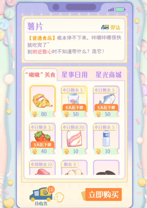 角色在外出归来之后会给玩家带回照片和礼物,可以通过这种方式欣赏游戏里不同地区的美景,但为了让玩家更有参与感,也并不是完全自由的设定,就比如游戏里每天都需要挑选几套服装放到衣橱,决策会在选定的这几套服装里再次挑选,玩家可以通过给角色背包里,放置不同的食物,影响他们的外出距离。