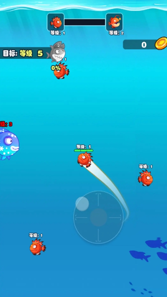 可玩性很是不错的鱼吃鱼类游戏,每种鱼类头上都会显示它们的等级,玩家只能操控小鱼吃掉与自己同等级或等级比自己低的鱼类,若触碰的鱼类等级高过自己就会被扣除一定血量,使得游戏玩起来也别有一番挑战。此外,吞吃一定数量的鱼后小鱼的等级将会得到提高,玩家们也能让它捕食更高级的鱼类,最终令它能称霸这片水域。