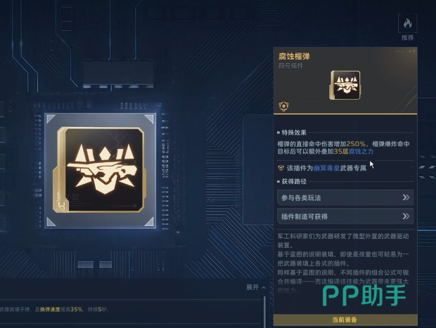 榴弹弹药不可无限续充,耗尽后自动回归机枪模式。值得注意的是,其弹药恢复机制依赖精准命中——只要在机枪模式下持续命中目标,即可逐步积累榴弹储备。此外,武器支持模块化配件拓展,例如“腐蚀榴弹强化插件”,可在保留原有爆炸范围与减速效果的基础上,进一步提升单发榴弹的基础伤害,并延长腐蚀状态持续时间。其他可装配配件亦可根据副本类型、Boss机制或队伍配置灵活调整。