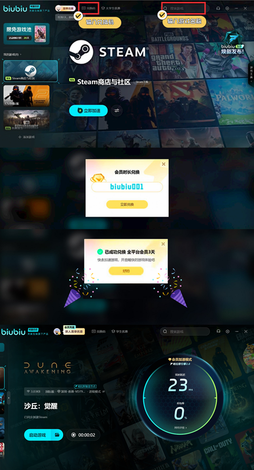 想要确保自己顺利进入游戏,可以提前准备一款加速器——biubiu加速器。通过这款工具,你可以轻松解决网络延迟问题,保证在游戏中的流畅体验。更好的是,现在通过提供的链接下载biubiu加速器,第一次使用的玩家还可以免费享受24小时的加速时长。而且,输入兑换码【biubiu001】后,无论你是新用户还是老玩家,都能再获赠72小时的免费会员,保证你在游戏内能流畅驰骋。整整96小时的免费福利,大家可千万不要错过。