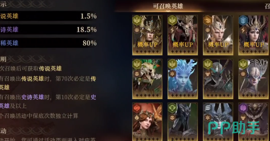 需要玩家注意的是抽卡也是有策略的,在每个赛季刚开始的时候,通过抽卡很容易获得一些等级较高的英雄,每一个英雄还有特定的标签,可以在抽卡的时候通过选择相应的标签,提升英雄召唤成功率,针对每一个赛季,还会设定特定的英雄角色我,满足10连抽就有极大的几率可以获得相应的英雄,假如正好是玩家需要的,那就可以积极参与。
