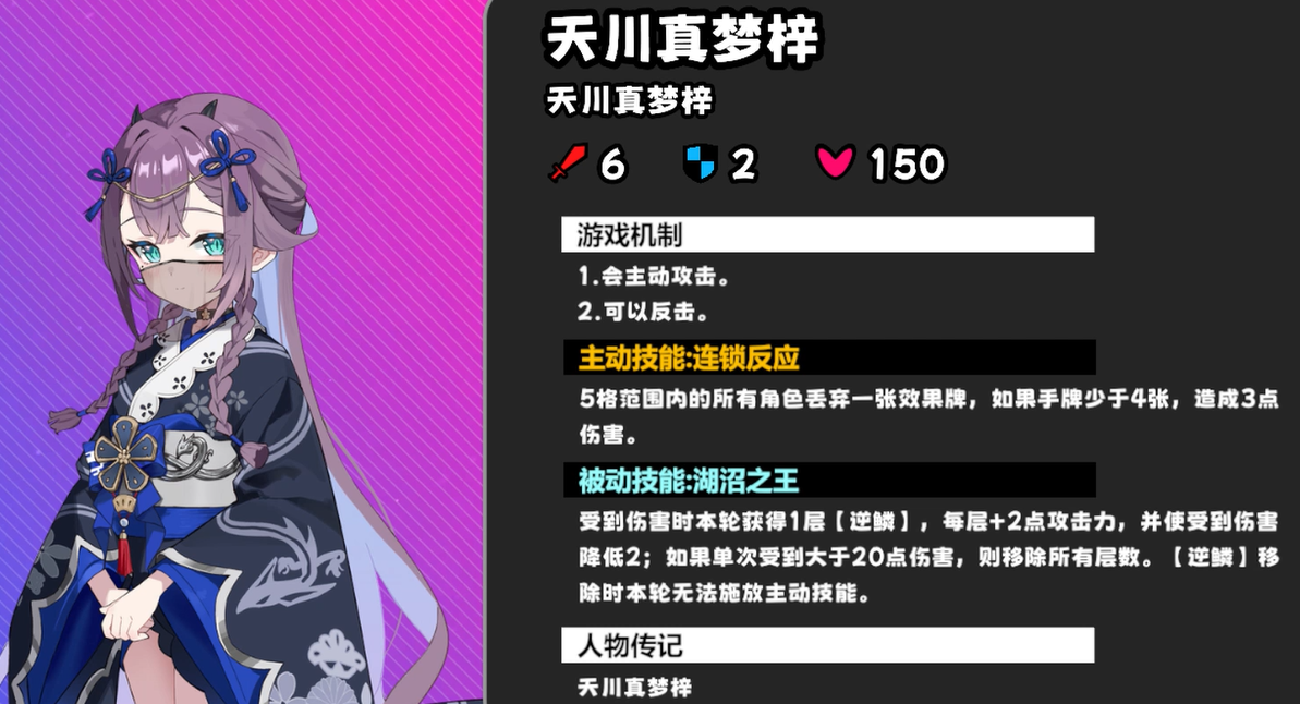当天川苍鲤作为Boss出战时,机制重心转为“金鳞”体系。其每次成功反击均可叠加1层金鳞,该层数无上限,且每层永久提升攻击与防御数值。同时,其技能会召唤金小鱼协助作战,金小鱼亦可为其提供额外金鳞。此机制下,战斗拖沓将迅速抬升Boss强度。破局关键在于开局阶段:真梦梓会在Boss战起始时,向距离最近的玩家发放一张“毒牙牌”,该牌唯一作用即为消除天川苍鲤全部金鳞层数。务必于首轮或第二轮内立即使用,切勿留存或误施于其他目标,否则随金鳞累积,Boss将极难压制。