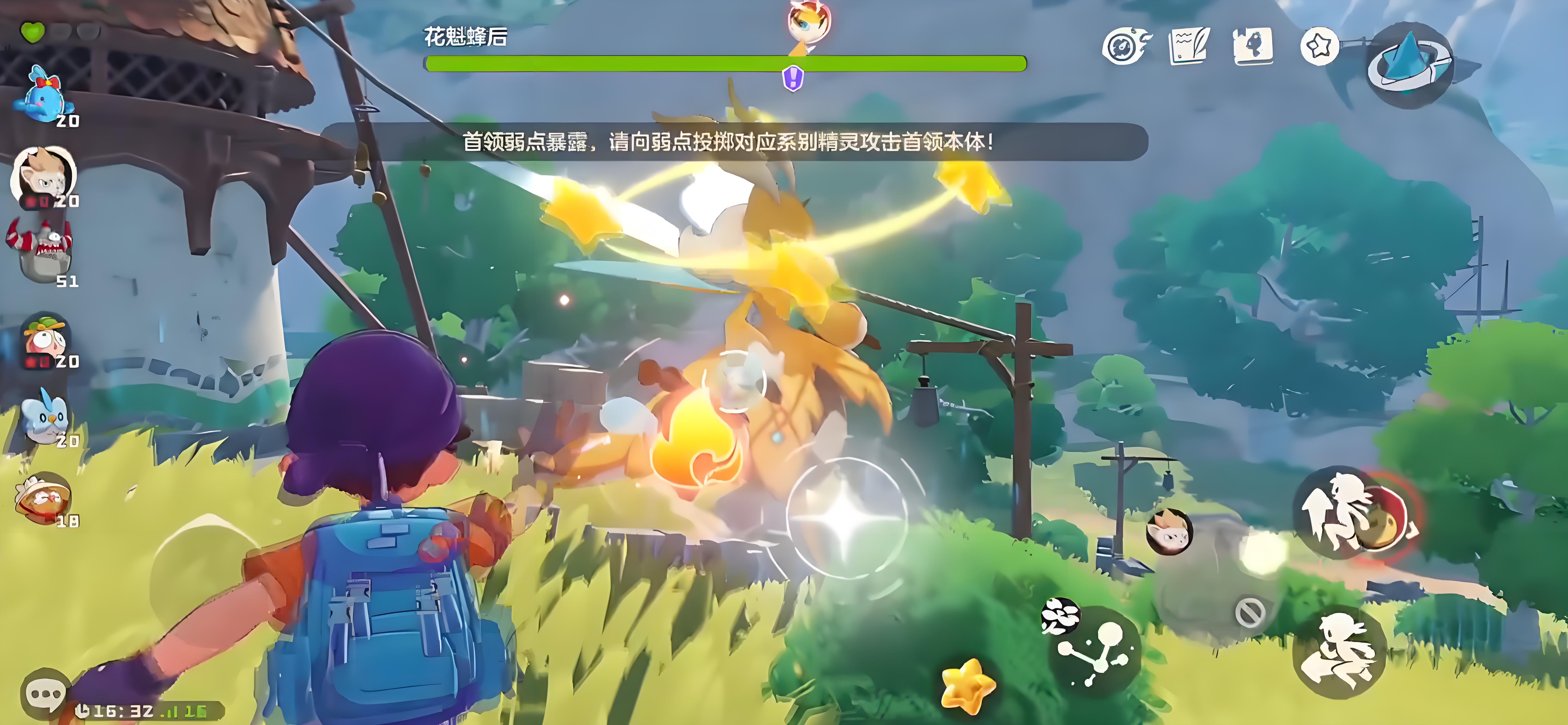 若同步进行“水眷属”主线任务,可留意西侧谜题提示——其答案明确指向一窝蜂,解谜完成后自动导向同一古树位置,实现任务与捕捉双线并行。对于希望快速获得高阶形态的玩家,推荐两种路径:其一为常规养成路线,将捕获的雌性一窝蜂提升至15级进化为黄蜂后,再升至25级自动进阶为花魁蜂后;其二为挑战速成路线,在草原地图直接迎战花魁蜂后Boss,需配置火属性精灵以提升输出效率,同时注意其反击附带中毒效果,状态栏变绿时须立即使用解毒类道具,防止战斗减员。