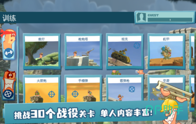 游戏内置十关渐进式训练模式,涵盖20项动态递增的挑战任务,各关卡在地形结构、资源分布与敌方配置上均存在差异化设计。玩家需结合实时武器属性、风向参数及场景可交互元素(如石驴、弹簧板、炸药桶等),构建高适配性战术方案。例如利用石驴实施地形压制,或通过神圣手雷触发连锁爆破,每一次操作都将直接影响战局走向。胜利带来的不仅是成就感,更是对策略逻辑闭环的直观反馈。