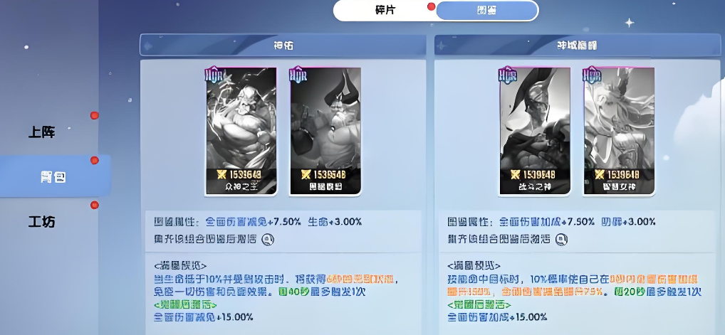 魔灵卡牌系统于玩家等级达到64级时正式解锁,属于中后期关键养成节点。所有已获得的魔灵卡牌均需通过“背包”界面查看与管理,而合成与开启操作则统一在“工坊”中完成。每张完整卡牌由10枚同名魔灵碎片合成,碎片来源覆盖战场商店、每日限购、黑市交易及魔域讨伐四大常规渠道。不同渠道产出的宝箱分为秘银、紫金与深渊秘宝三类,其中深渊秘宝开出红色品质魔灵碎片的概率最高,紫金次之,秘银最低。