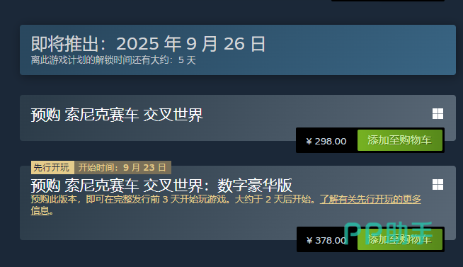 本作将在Steam平台正式上线,提供两个购买版本:标准版定价为298元,豪华版则为378元。两者的核心差异在于附加内容,豪华版额外包含限定赛车、特殊角色皮肤以及专属道具包等数字奖励。对于希望完整体验主线玩法的玩家而言,标准版已足够满足需求,并不会影响核心竞速乐趣。