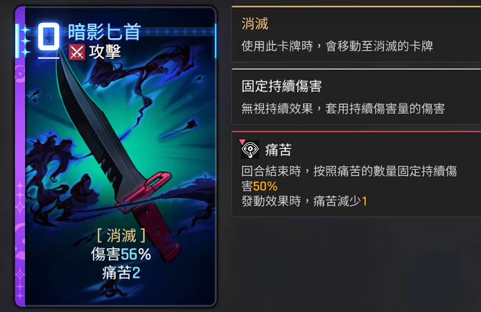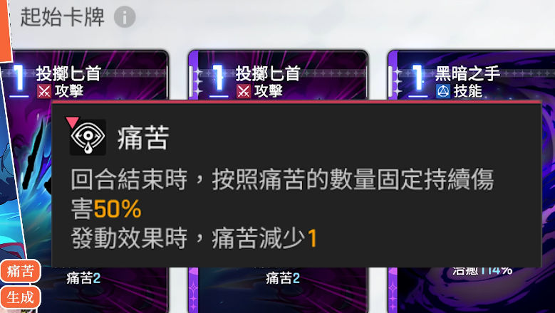 基础构筑以三张核心卡为起点:两张【投掷匕首】、一张【黑暗之手】。需注意,初始【投掷匕首】不附带痛苦效果,必须通过潜力系统点亮“精通”类基础卡牌才能激活该特性。若选择“奶刀”流派(即以治疗触发协同输出的变体),建议首轮即移除【投掷匕首】;而其他所有流派,则优先剔除【黑暗之手】——因其泛用性弱且易卡手。