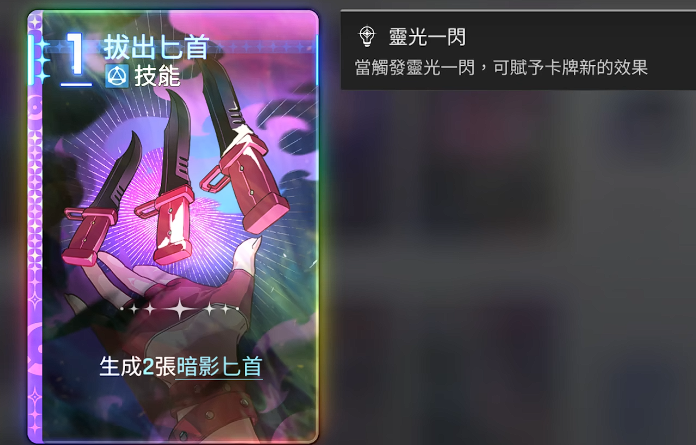 围绕核心卡,需明确卡牌价值权重:一张【暗影匕首】约等效于0.5张功能卡。针对“奶刀”流派,灵光一闪首选【3号】或【5号】——二者均为一次性使用卡,利于压缩牌库、加速循环;非奶刀流则更倾向【零费附加诅咒】,使当回合所有攻击牌额外施加痛苦,其中【2号】(持续两回合)、【4号】(费用低廉稳定)、【5号】(奶刀专属神卡)最为实用。【5号】之所以关键,在于奶刀体系中每张治疗/匕首均挂痛苦,叠加后单次攻击实际倍率提升50%,配合5抽3选1机制,容错率极高。