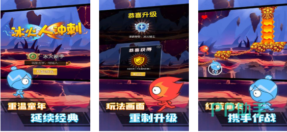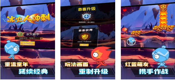 冰火人冲刺是款玩法经典又极具新意的双人冒险游戏,冰火人会在本作中合作进行跑酷挑战各种关卡,重置升级的美术风格辨识度也不错,操作更灵活可让双人快速合作挑战难关,森林、火山等跑酷地图呈现提供源源不断的新鲜感,搞笑纷呈的气氛演绎也是森林冰火人系列手游的标配哟。
