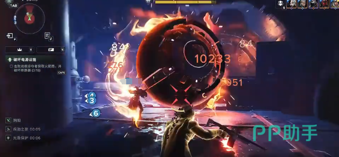 第一阶段任务为摧毁18个断路器。值得注意的是,玩家无法直接使用自身技能或武器进行破坏,必须击杀地图中带有特殊标识的敌人,拾取其掉落的专用工具方可完成操作。首次挑战时常因遗漏隐蔽点位而导致失败,后续发现部分断路器藏于通道下方等不易察觉区域,需格外留意。在破坏过程中,会不断刷新大量敌方单位干扰进度,其中部分敌人携带颜色护盾——红色护盾需用烈日元素技能破解,蓝色护盾则依赖电弧属性攻击,合理分配破盾职责至关重要。