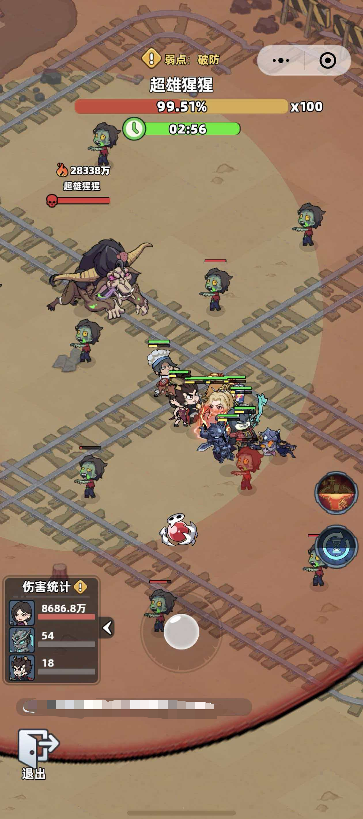 进入战斗后,超雄猩猩将依次释放两类关键技能:第一阶段为双环范围攻击,呈现内外两层同心圆特效。未及时闪避的玩家应主动站位至内圈中心或两环夹层区域,以此规避最大伤害区间;第二阶段为持续性雷阵覆盖,其伤害与角色当前防御属性呈负相关——防御越低,承伤速度越快。当Boss体表浮现蓝色电网脉动特效时,即为雷阵即将展开的明确预警信号,须立即执行预设站位。同步需关注战场环境:散布的小型丧尸单位被击杀后将掉落矿石资源,此类道具不仅影响Boss增益触发条件,亦为后续战术调整提供关键决策依据,务必在安全窗口期完成拾取。