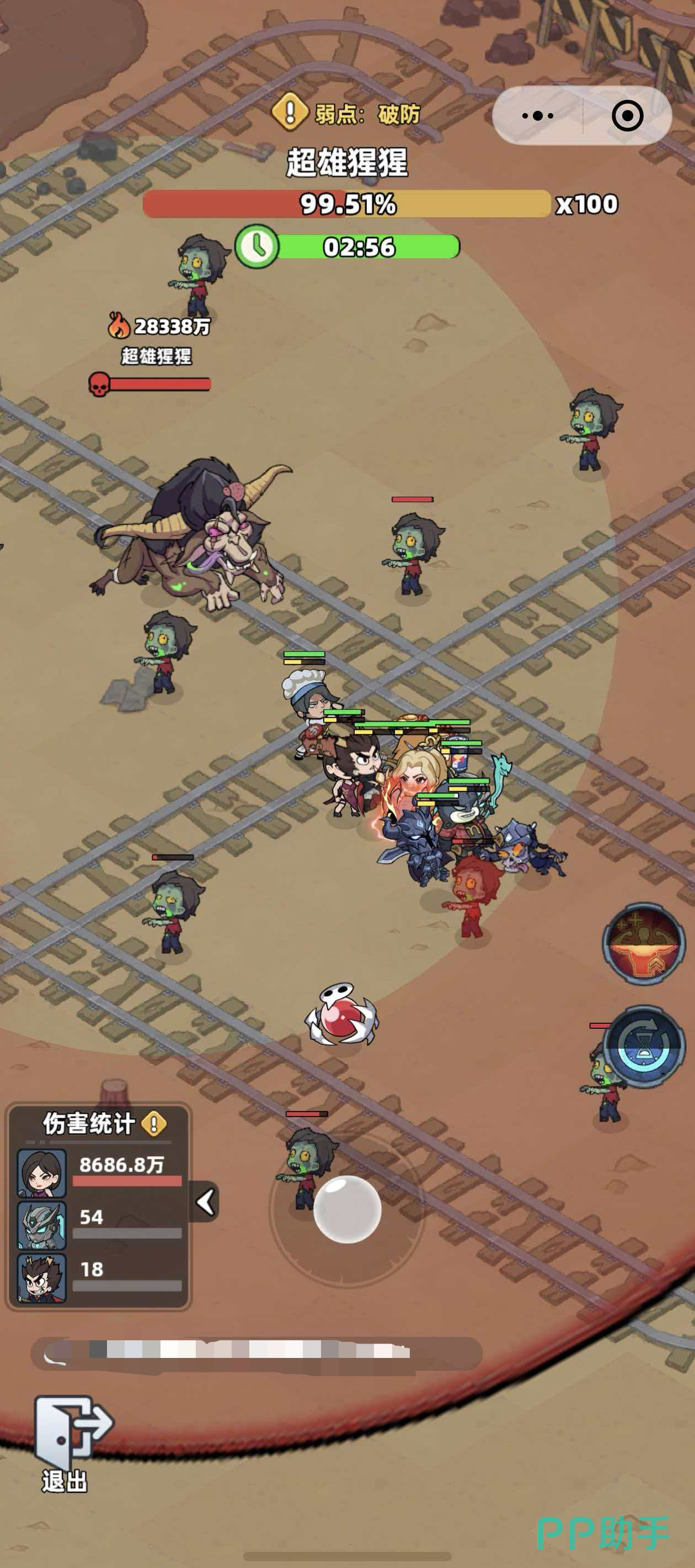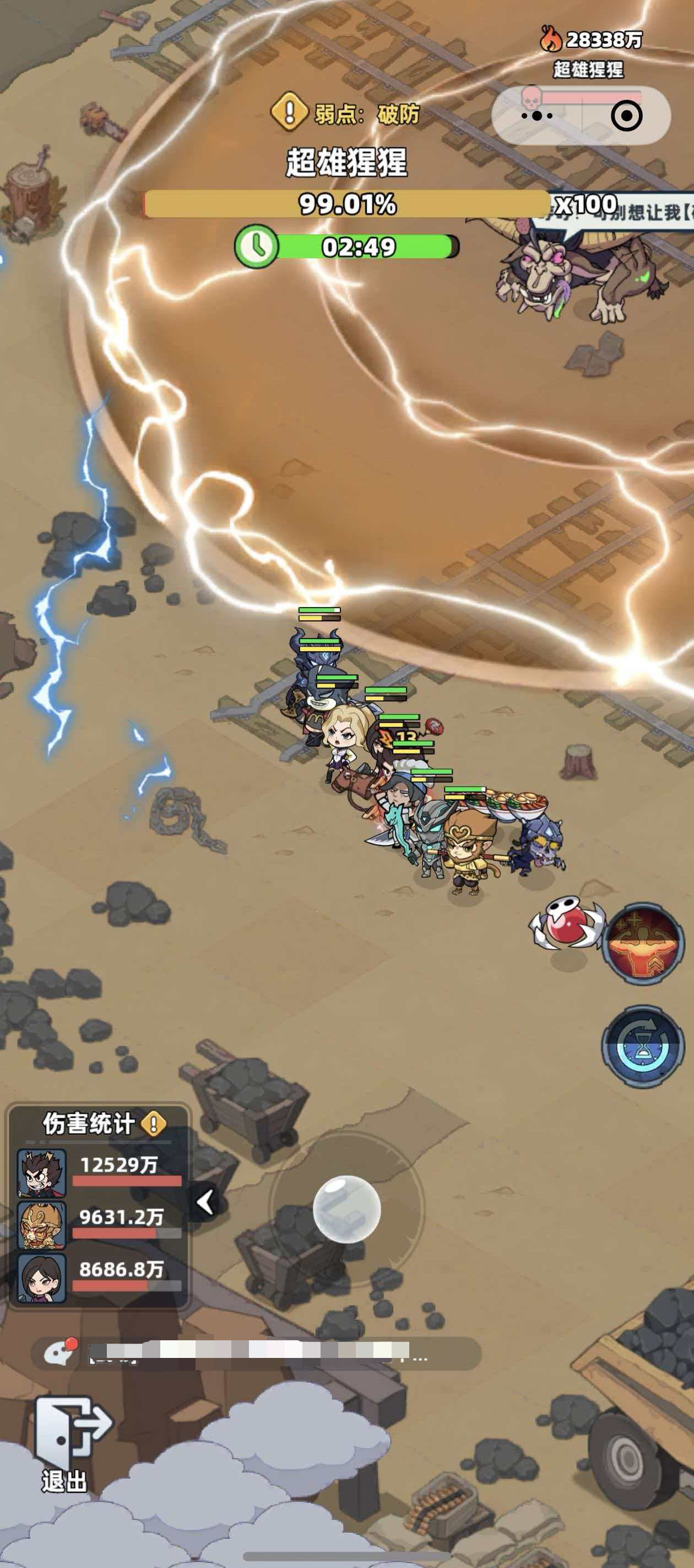 该Boss的核心机制聚焦于“高防御阈值+动态增益转化”。其首要弱点类型为【破防】,意味着常规输出需优先穿透其高额护甲层。当前版本中,具备稳定破防能力的可部署幸存者仅有两位:首充即赠的机甲战士,以及通过常规招募池获取的剑术大师。二者任选其一作为主力输出位,是构建有效阵容的前提。需特别注意的是,战斗过程中若成功清除场内所有矿石单位,超雄猩猩将立即激活【高防增益】状态,此时若未及时补足破防覆盖率,团队输出效率将断崖式下滑。此外,在雷阵技能生效期间,角色移动将直接触发连锁雷击判定,造成不可规避的巨额伤害,因此站位管理必须严格遵循固定区域原则。