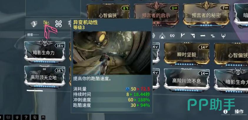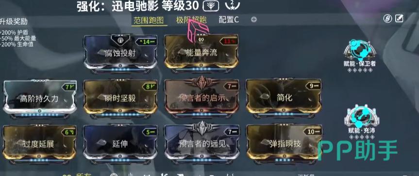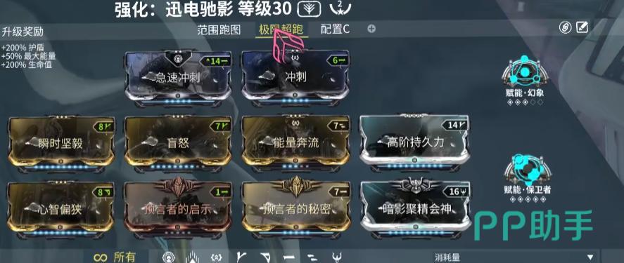 值得注意的是,迅电驰影的1技能“马赫冲驰”本身不依赖技能强度加成,但其移动增益效果可受到伏特的2技能加速以及花甲战甲1技能的影响。此外,通过使用从其他单位移植而来的“异变机动性”技能,还能显著提升跑酷阶段的速度表现,这一点在高速移动中尤为关键。在启动前务必开启4技能“赤限”,不仅能有效降低技能能耗,还具备出色的视觉特效。