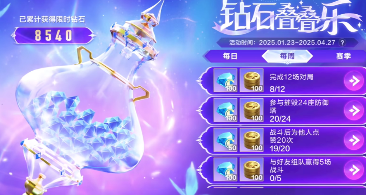 例如在钻石叠叠乐任务当中,玩家不仅可以获得钻石,还能够获得该赛季钻石叠叠乐的头像框奖励。