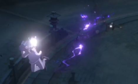 一技能【阴五雷·坠击】:张灵玉跃起后向目标区域持续倾泻阴五雷能量,形成范围性雷击场。该技能具备双重效果——对范围内敌人造成多段法术伤害,并施加“僵持”状态;处于僵持中的单位将被雷电牵引力强制沿雷击方向位移,无法自主移动或闪避,但可使用解控技能解除。该技能为耗能型技能,适用于中距离消耗、地形压制及连招收尾衔接。