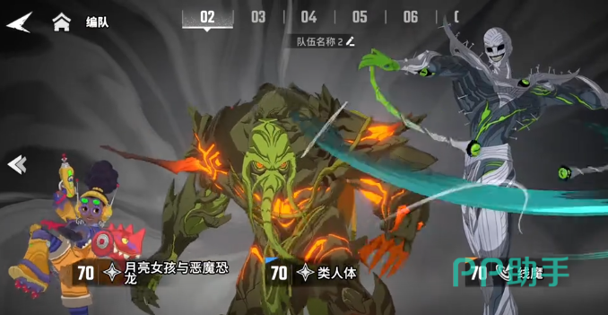 第二个阵容更加简洁易组,可选择类人体与月亮女孩搭配使用。月亮女孩在此体系中担任主要输出位,其一技能可发射导弹造成高额伤害,同时为敌人附加减益状态,提升后续伤害收益。类人体则可通过首个技能召唤四名分身参与作战,增强战场控制力与生存能力。整个队伍分工明确,兼具承伤与增伤功能,策略性较强,操作起来也较为轻松。如果没有类人体或月亮女孩,也可以考虑替换为月光骑士,维持阵容的基本运转。