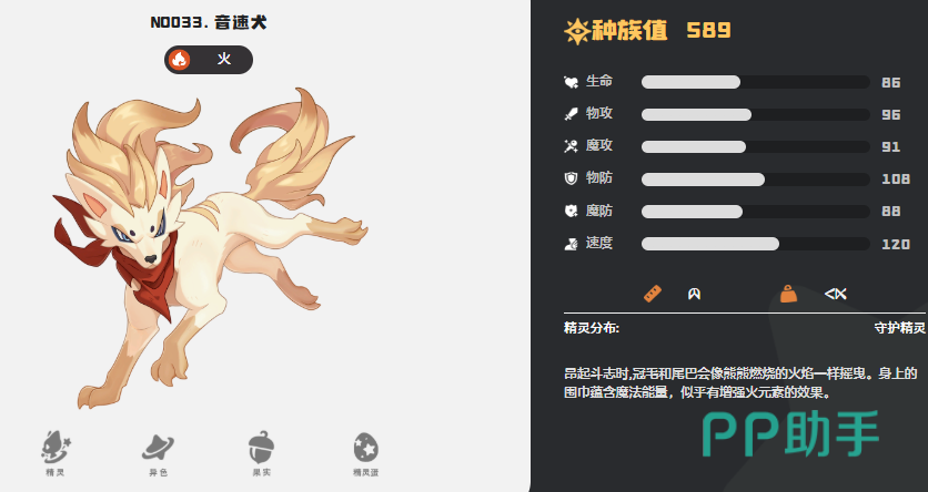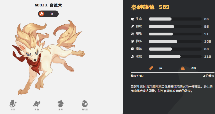 第四位火系精灵音速犬,主打首回合爆发。其天赋“专注力”可在登场当回合,使物理攻击的基础伤害提升100%。该增益不可叠加、不可重复触发,仅作用于出场后的第一个行动阶段。因此需配合先手技能或速度强化手段确保其优先出手,将单次物理打击转化为决定战局走向的关键输出节点,适用于速攻压制与斩杀补刀场景。