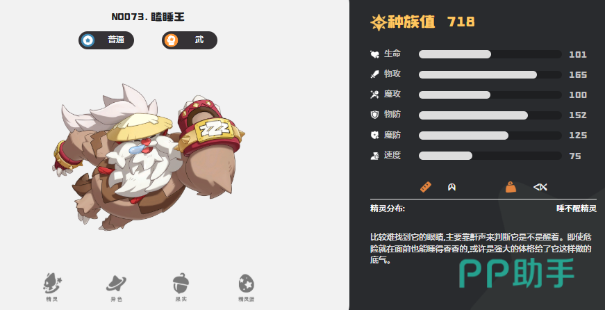 第二位推荐双系精灵瞌睡王(普通/武系)。其核心机制依赖“慢热型”天赋——若登场前己方已有其他精灵完成一次行动,则瞌睡王入场时自动获得5点初始能量。因此布阵时切忌将其置于首发位置,而应安排于二号或三号位,配合前排精灵的试探性行动完成能量预充。该机制大幅缓解了前期能量短缺问题,使其能更快衔接高阶技能,提升整体战术容错率与续航稳定性。
