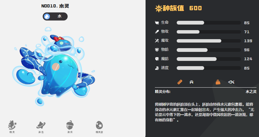 综上所述,这五只精灵分别覆盖普通、普通/武、草、火、水五大属性方向,天赋设计均紧扣各自定位,既保障新手期的易用性,又预留清晰的成长路径。无论选择单一属性深耕,还是逐步尝试元素协同体系,均可依托其机制特点建立稳定高效的战斗模型。合理理解并运用这些核心数值与规则,是迈向高阶对战的重要起点。